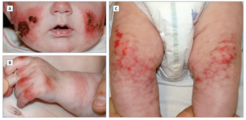 Typical skin wounds in paediatric patient with SAVI, Figure from Munoz et al., 2015 JAMA Dermatology