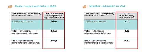 ILP100 outperforms benchmark controls for the marketed products Remicade and Entyvio
